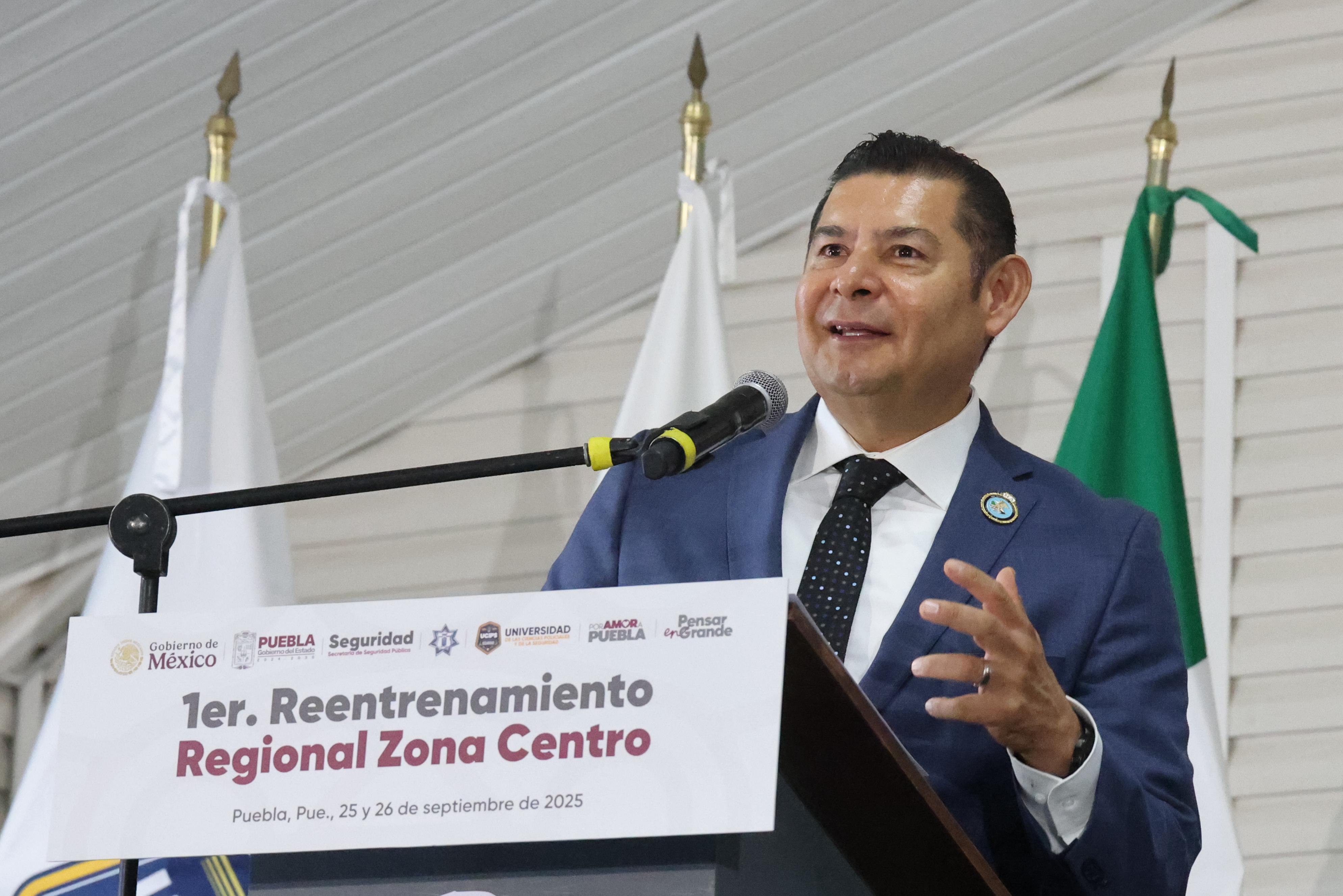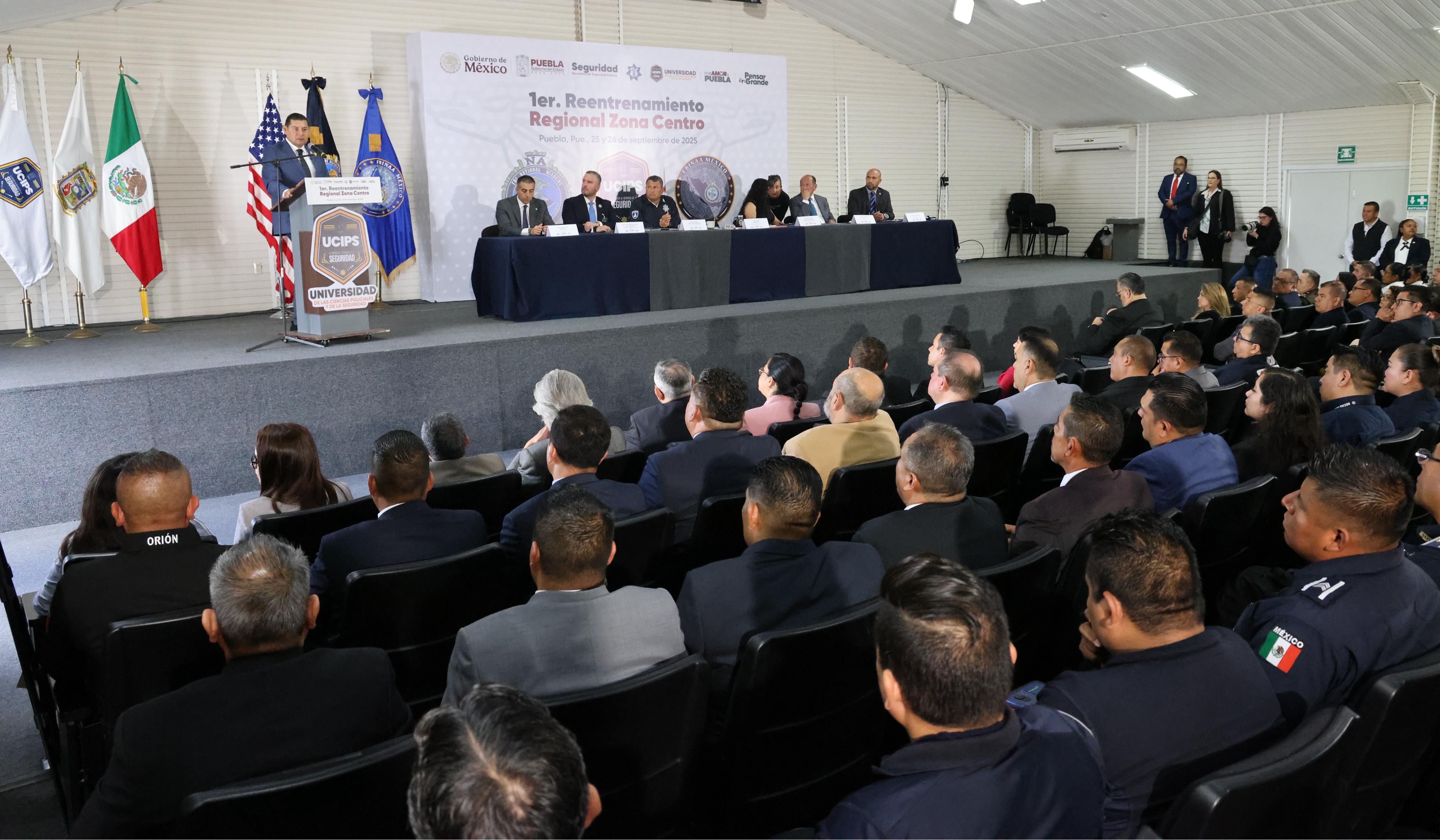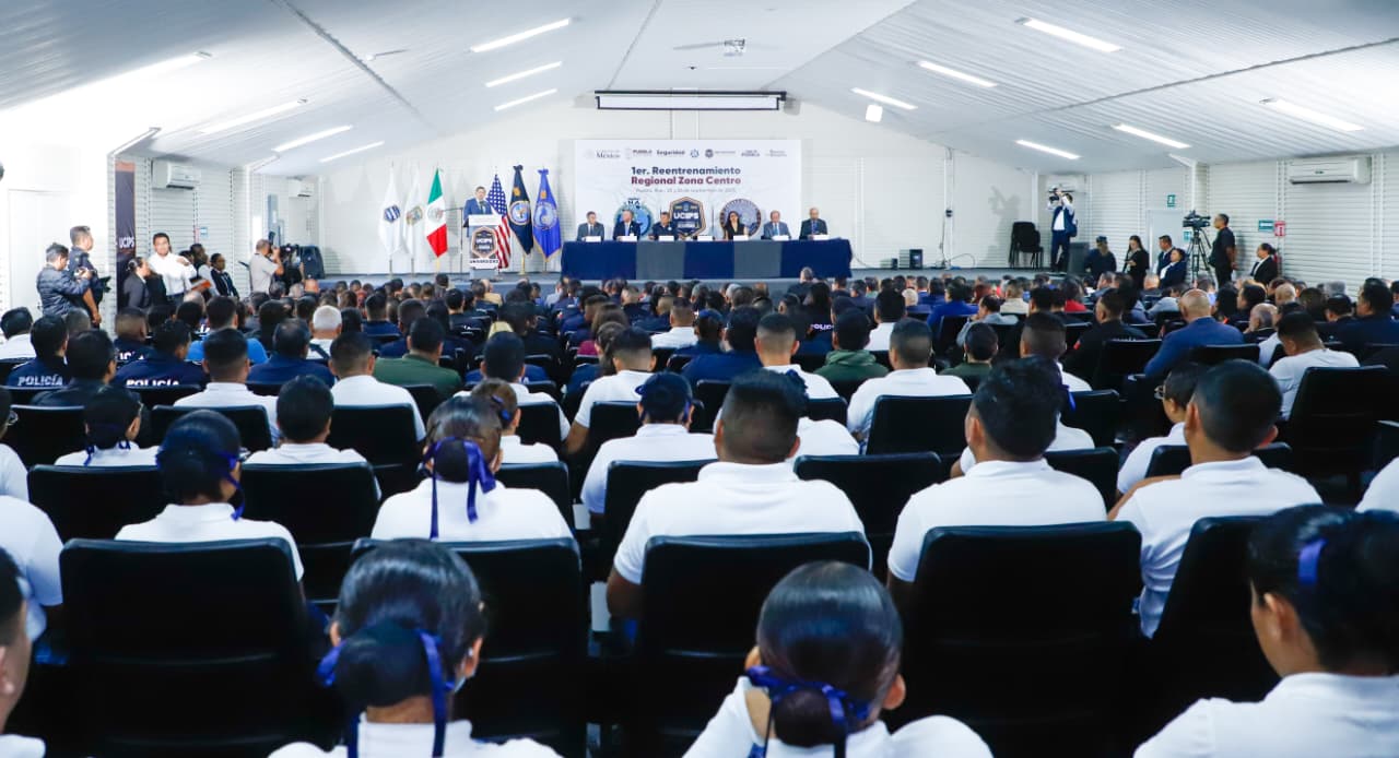 AMOZOC, Pue.- Alineados a la estrategia de atención a las causas y reconstrucción del tejido social, con el objetivo de fortalecer las capacidades técnicas, tácticas y operativas de los cuerpos policiales en la entidad, el gobernador Alejandro Armenta inauguró el Primer Reentrenamiento Regional de la Asociación de Egresados de la Academia Nacional del FBI Capítulo México (FBINAA).