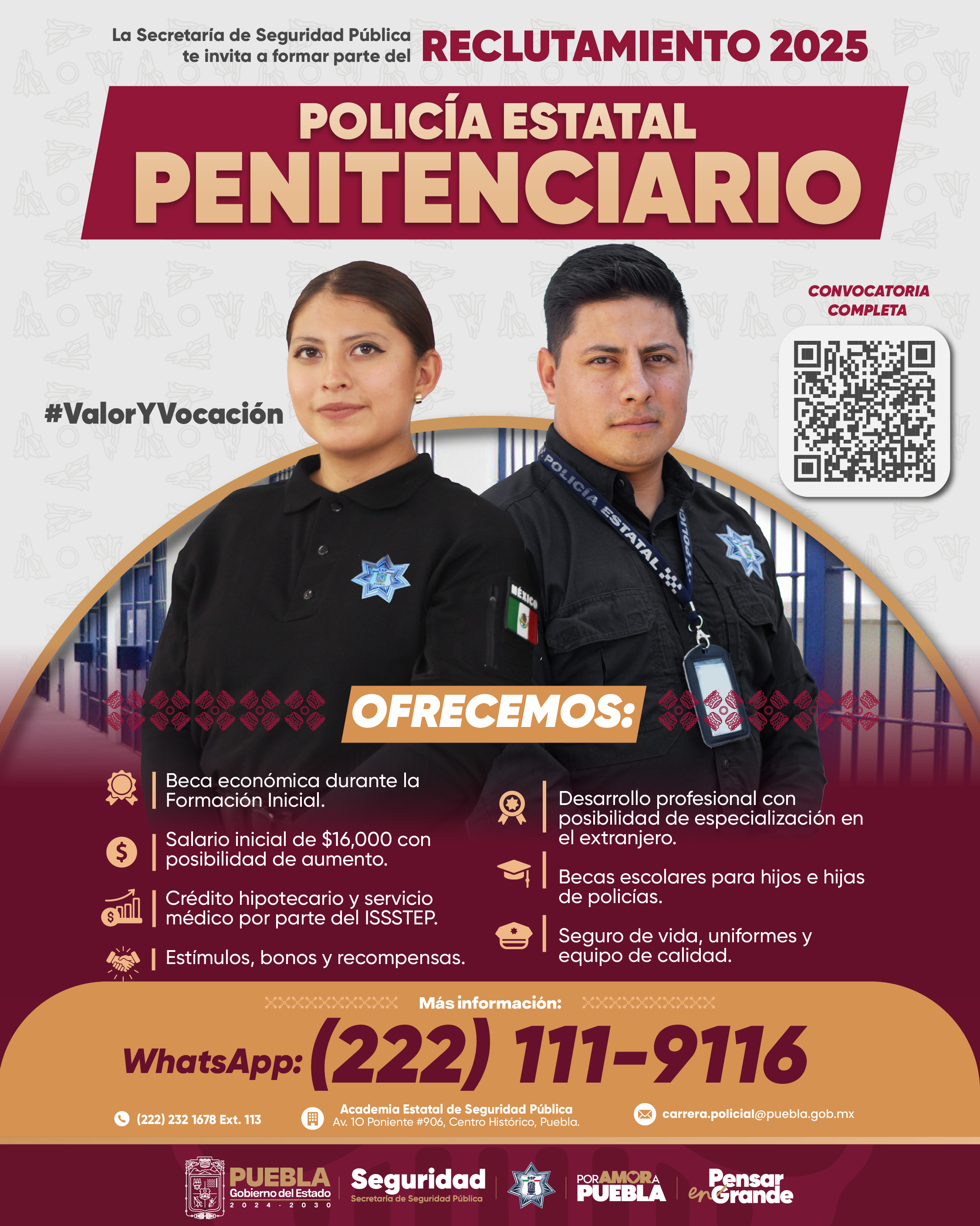 Convocamos a hombres y mujeres para integrarse a las filas de la Policía Estatal Preventiva y Policía Estatal Custodio.
