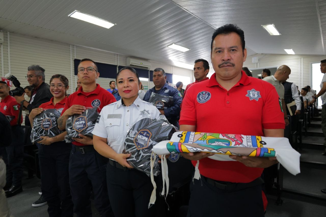 Esta ceremonia contó con la asistencia del coordinador general de Control, Comando, Coordinación, Comunicaciones, Cómputo e Inteligencia (C5i), Ervin Sibaja Cruz; del director de Intervención Focalizada de la Subsecretaría de Prevención del Delito, Sergio Alejandro Sánchez Franco; del director general de Gestión Estratégica y Desarrollo Institucional, Juan Manuel Aguirre López; así como de la encargada de despacho de la Vicerrectoría Académica de la UCIPS, Rocío Brambila Limón y de la directora del Bachillerato Técnico en Seguridad Ciudadana de la UCIPS, Fernanda Iveth Ocampo Lara.
