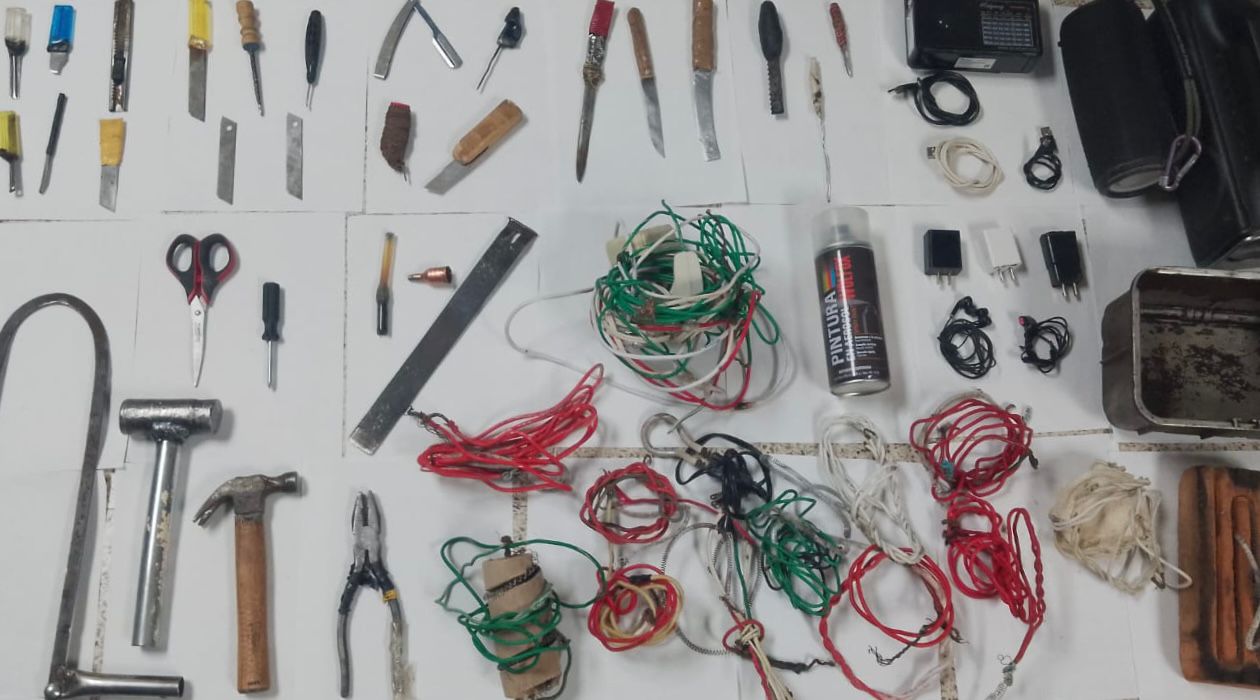 - Seguridad Pública Estatal, con apoyo de DEFENSA y Guardia Nacional, aseguró objetos punzocortantes, equipos telefónicos, envoltorios con posible marihuana, entre otros artículos prohibidos.