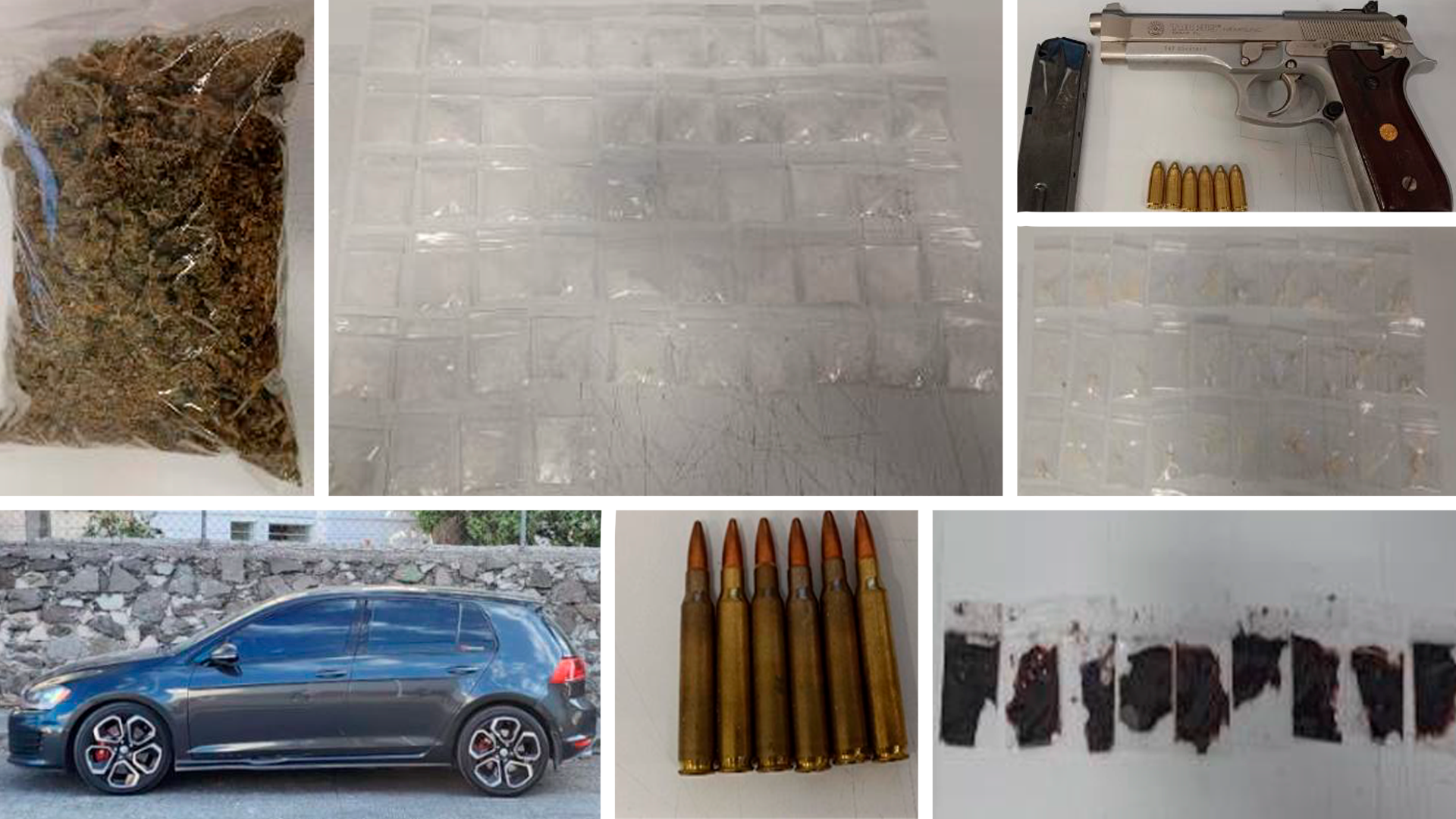 En la intervención, que se llevó a cabo en la colonia Vista Hermosa, se aseguraron envoltorios con posible droga, dinero en efectivo, cartuchos útiles, un arma de fuego corta y un vehículo con placas de circulación de Chihuahua.