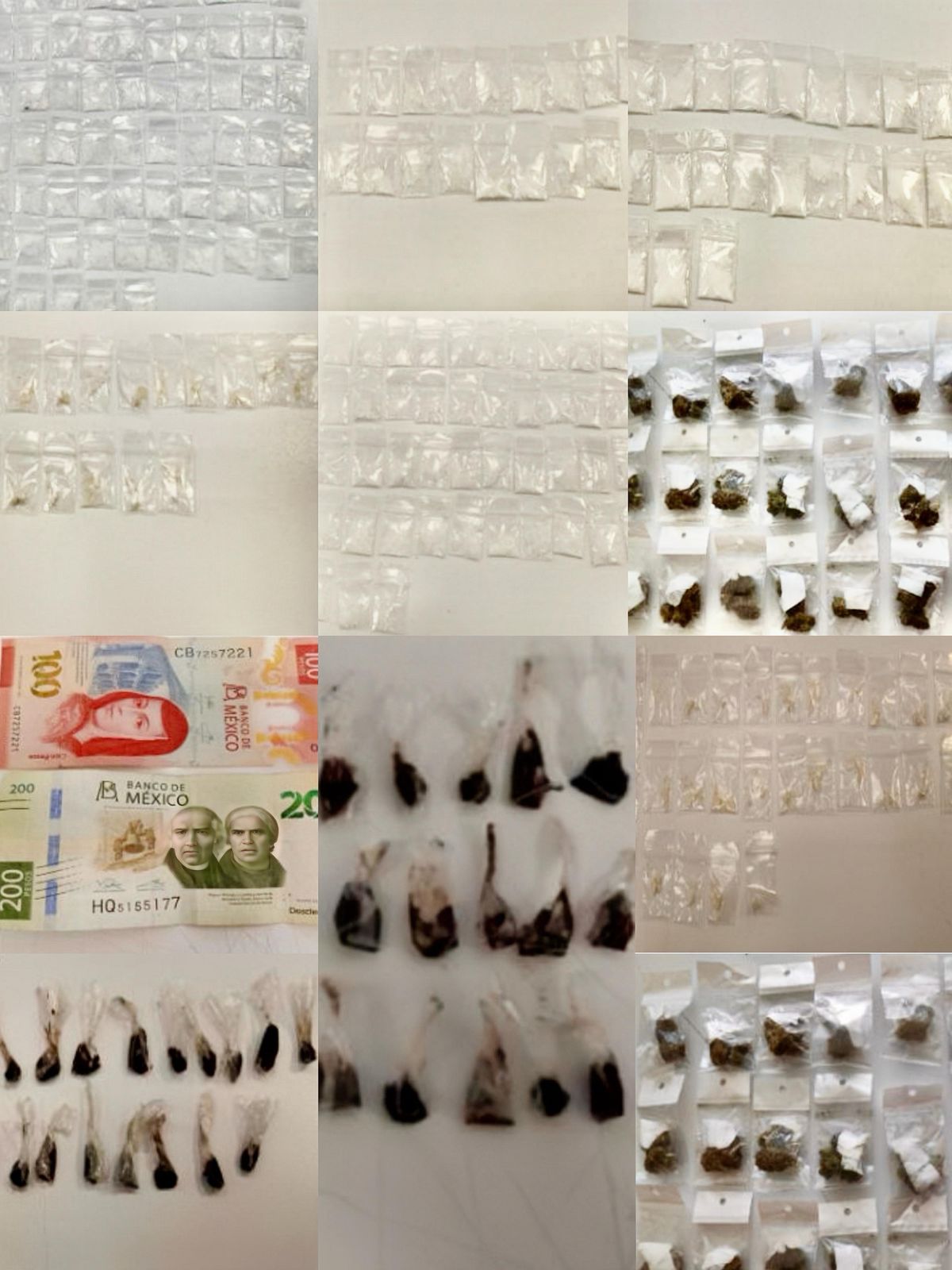 Esta intervención, también permitió que las fuerzas federales y estatales inhibieran la distribución de más de 250 envoltorios que contenían metanfetamina, cocaína, heroína y marihuana.